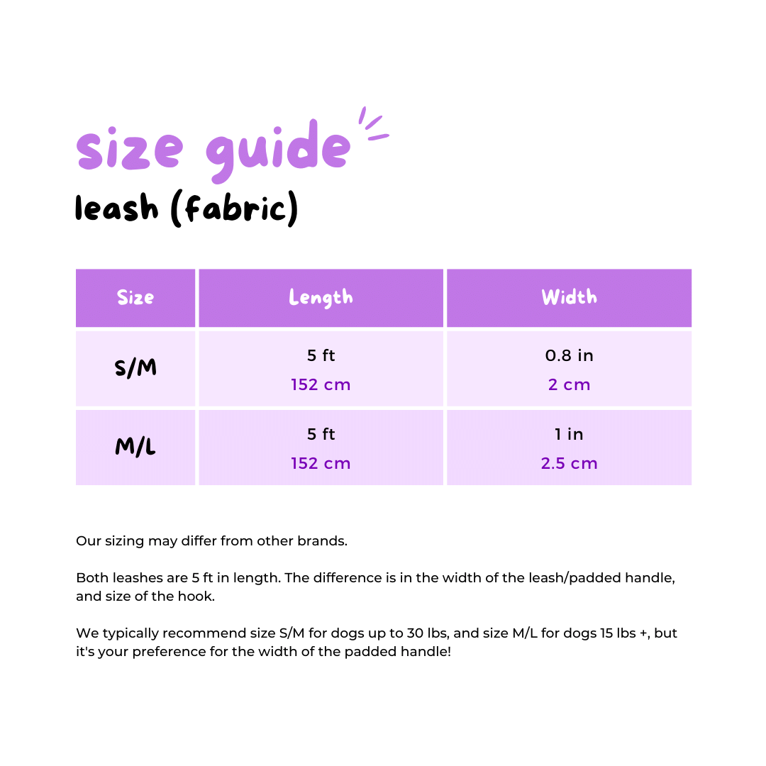 Please note: our sizing may differ from other brands, so it’s best to double-check your pup’s measurements before placing an order.
